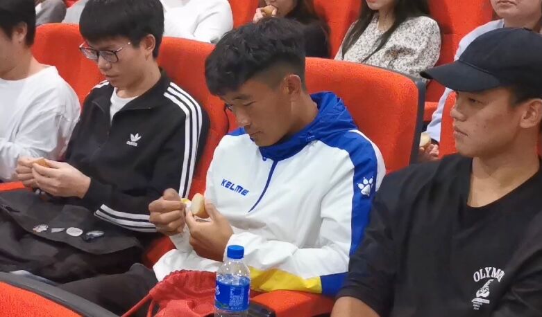 观影结束后,同学们都沉浸在厚重的历史之中,被志愿军战士所展现的大无畏精神所震撼。同时,开展沉浸式体验教育活动,王震洋老师将事先精心准备的冻土豆分发,同学们看着手里的冻土豆,回想着影片里面志愿军战士吃的是已经冻坏的黑土豆,然而才刚刚咬一口,发现冻土豆是极其的坚硬,硌牙的冻土豆实在是难以下咽。大家深深感受到了志愿军战士的艰辛与不易,我们要向英雄致敬,向国家致敬。