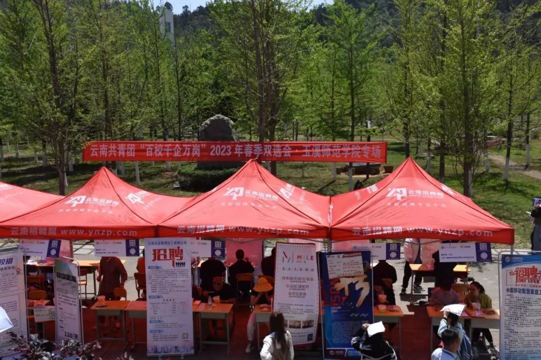 为贯彻落实习近平总书记关于做好高校毕业生就业工作的重要指示精神,根据云南共青团2023年“团团陪伴˙‘就’有‘位’来”促进大中专学生就业行动的有关要求,切实做好高校毕业生就业服务工作,2023年3月30日,由玉溪师范学院团委和就业指导中心联合主办的云南共青团“百校千企万岗”2023年春季双选会·玉溪师范学院专场在学校图书馆门前举办。