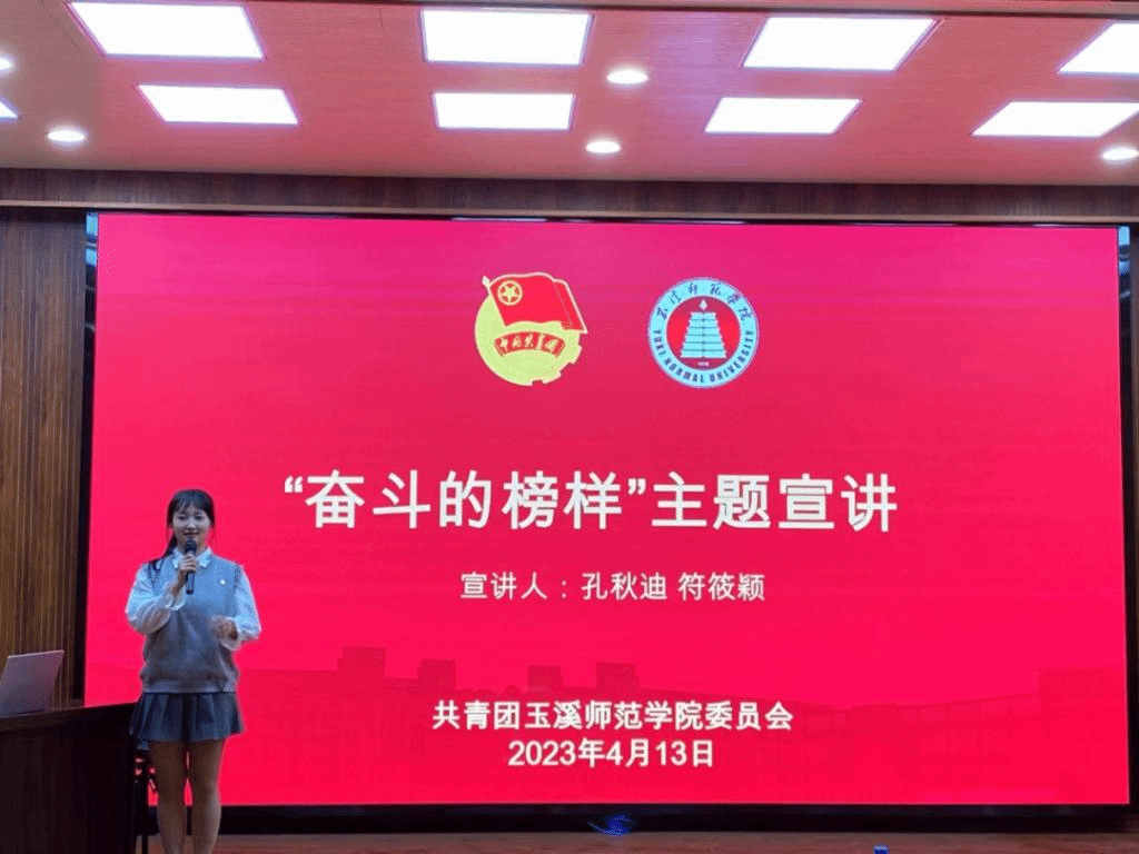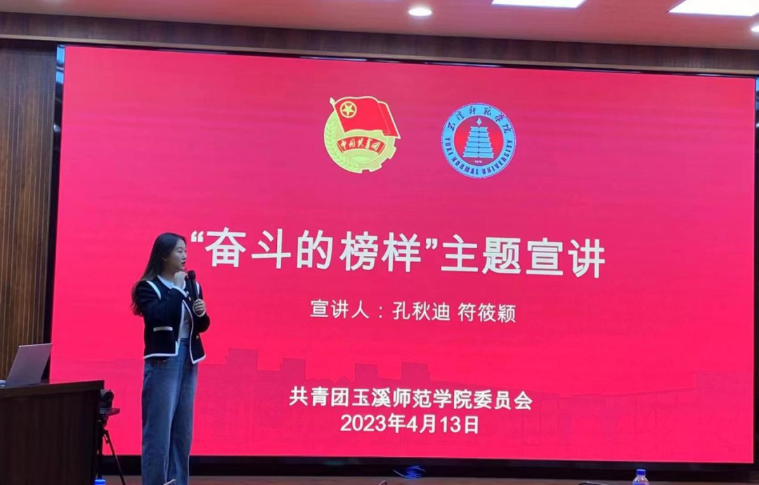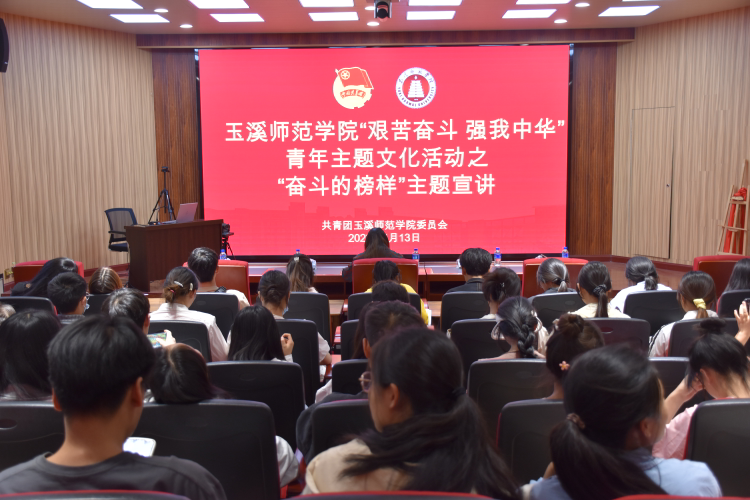 为深入学习宣传贯彻党的二十大精神和习近平总书记关于当代青年增强精神素养、发扬奋斗精神,鼓舞广大团员青年立志做有理想、敢担当、敢吃苦、肯奋斗的新时代好青年。4月13日,玉溪师范学院团委在马克思主义学院报告厅举办“艰苦奋斗强我中华”青年主题文化活动之“奋斗的榜样”主题宣讲活动,马克思主义学院团委书记、校团委专职团干、各二级学院团员代表及团学干部共60余人参加此次宣讲活动。