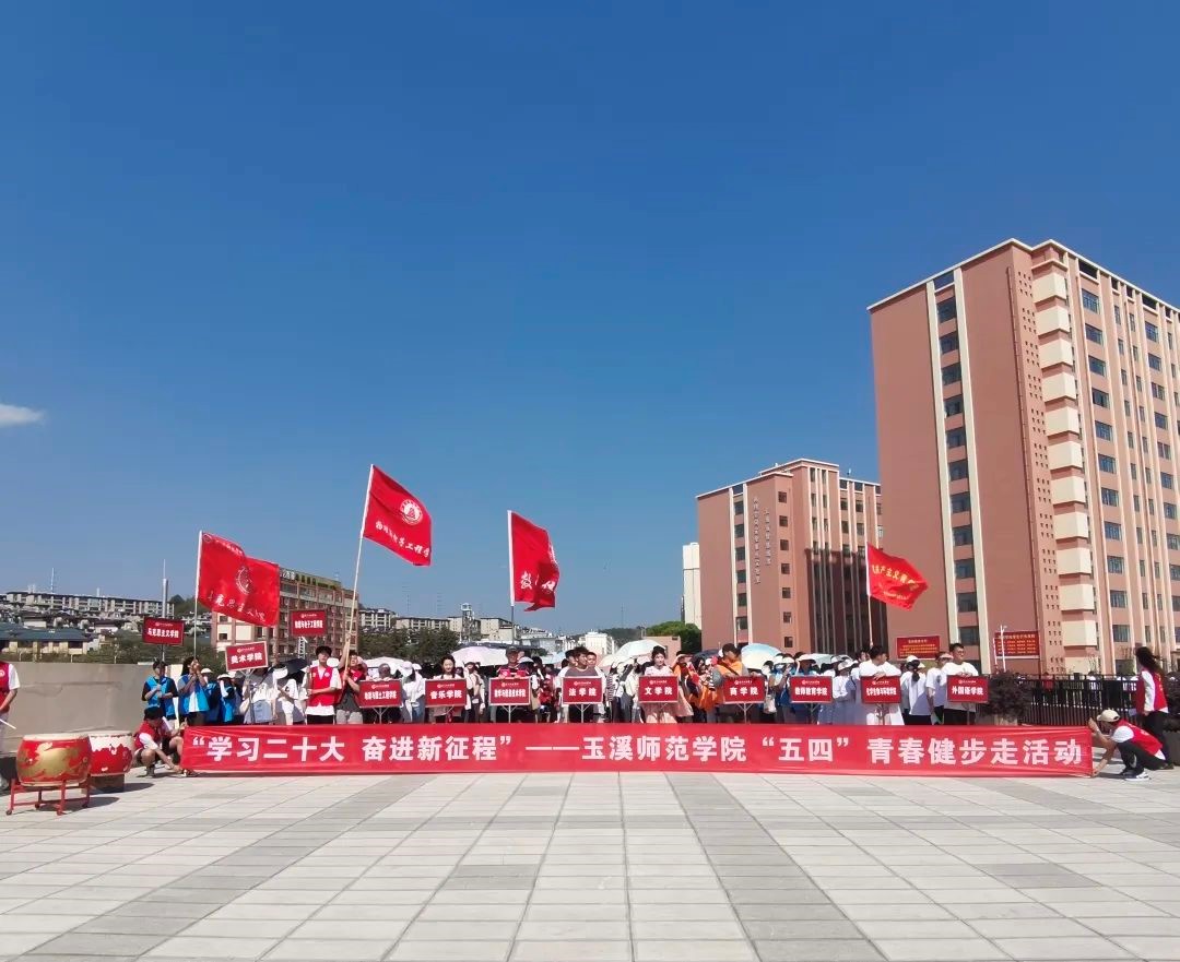 近日,包括西门道路改造、灯光球场修缮、山顶步道建设在内的学生体育运动设施修缮工程完工。在学校良好的体育运动设施加持下,为更好地引导广大团员青年加强体育锻炼,把体育运动的激情转化为推动学校一流地方应用型大学建设的豪情,4月21日,玉溪师范学院团委组织开展的“学习二十大 奋进新征程”—“五四”青春健步走活动正式拉开帷幕,全校13支代表队共550余人参与此次活动,学校党委副书记杨光出席活动并参与颁奖。