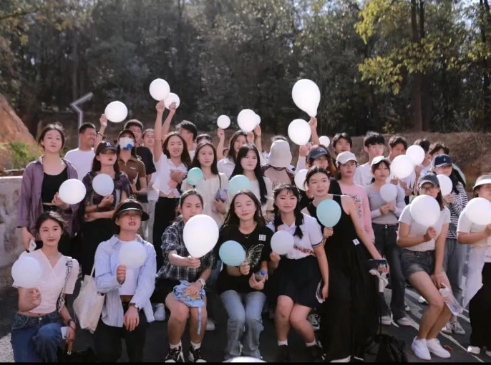 这个打卡点的打卡方式别具一格,各位参赛小伙伴需要将气球吹满,并完成团队拍照合影。五彩缤纷的气球不正是象征着我们多姿多彩的校园生活吗?