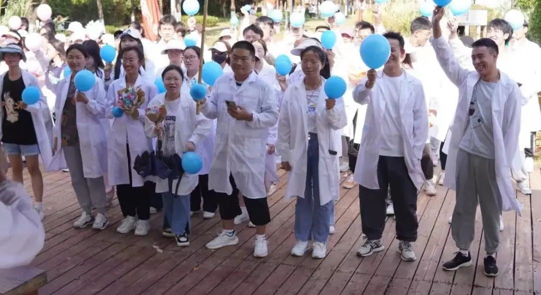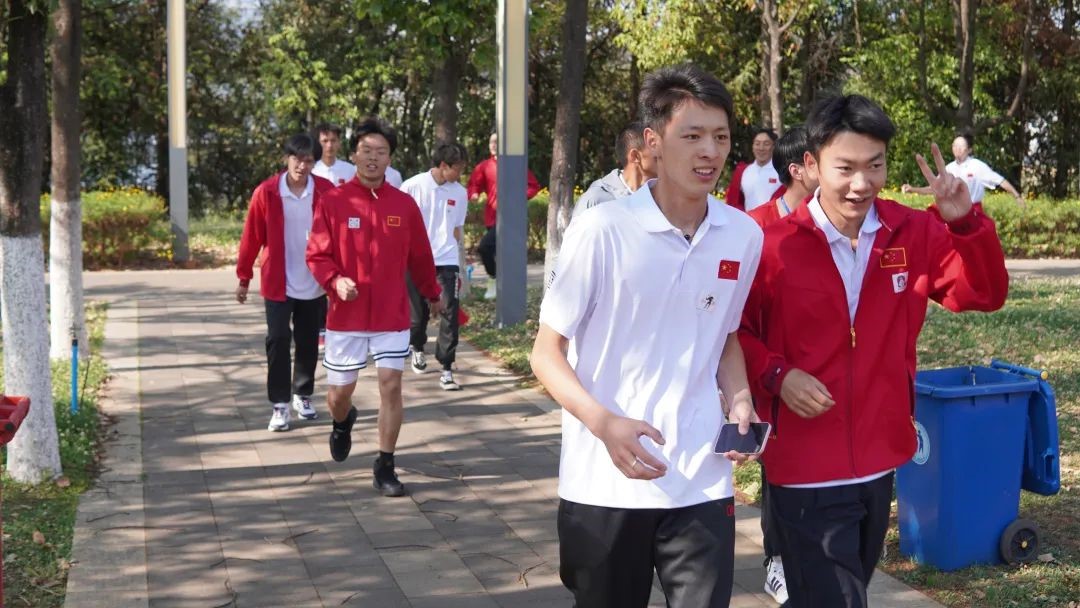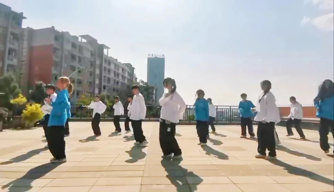 毕竟是健步走比赛,赛前热身自然是少不了的,在领操同学的带领下,同学们跳起了“专属”的热身操。