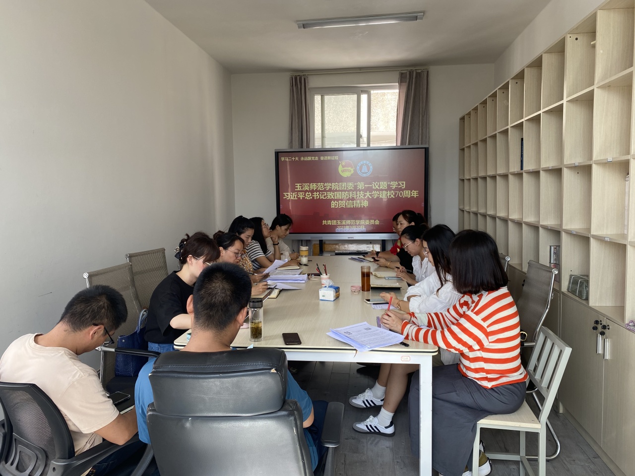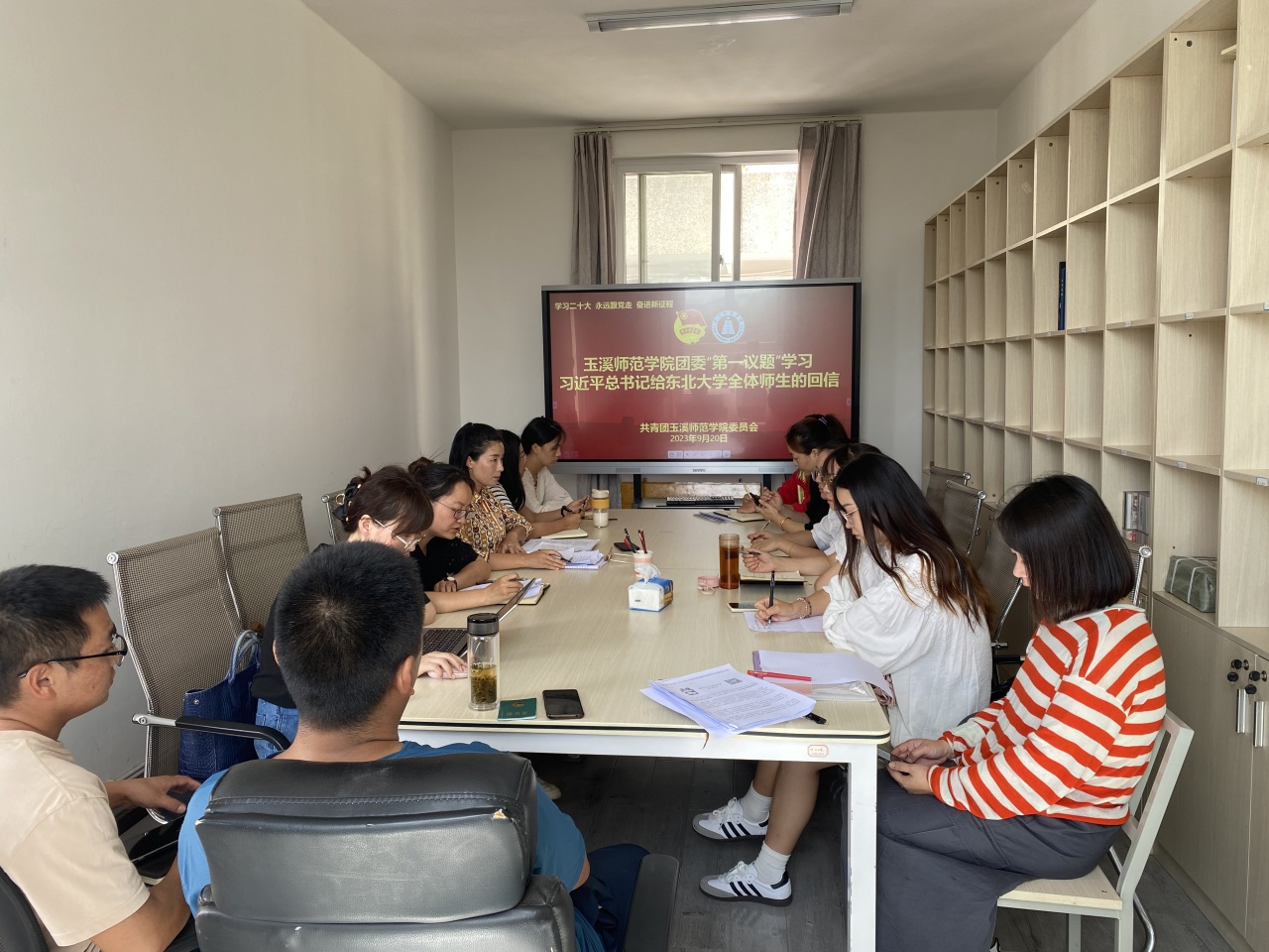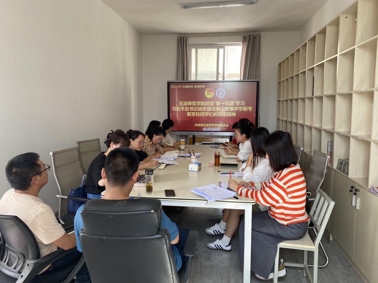 会议通过“第一议题”形式,认真学习习近平总书记给东北大学全体师生的回信、习近平总书记致国防科技大学建校70周年的贺信以及习近平总书记给安徽省潜山野寨中学新考取军校同学们的回信精神。会议指出,习近平总书记的重要回信贺信,充分体现了以习近平同志为核心的党中央对青年成长的高度重视和亲切关怀,同时也为青年人才的成长和培养指明了方向、提出了要求。会议强调,要坚持“第一议题”制度,深化拓展校级团委领学、基层团委促学、团支部研学、团员自学“四学联动”,全面贯彻落实习近平总书记重要讲话精神。要充分利用学校聂耳和国歌爱国主义教育基地、网络正能量传播教育基地,积极开展特色鲜明、富有实效的教育实践活动,引导广大团员青年在学习中坚定理想信念、涵养意志品格、扎实专业知识、投身社会服务、积极担当作为。