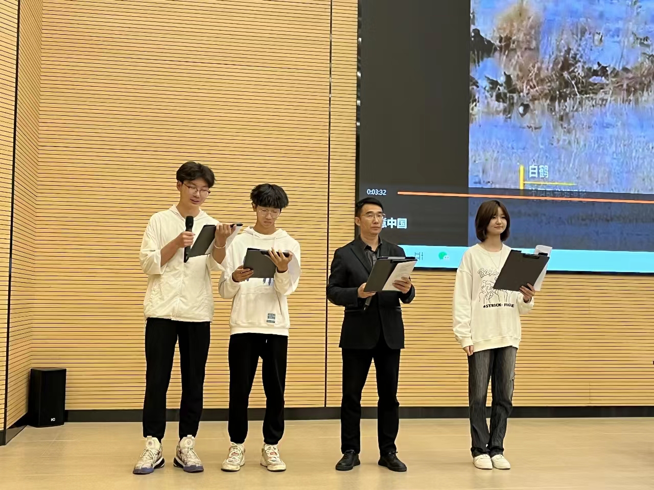 首先,潘老师和三名新生同学共同朗诵《诗意中国》,带领全体同学齐声朗诵《沁园春•长沙》,使全场师生感受到了伟人毛泽东远大的抱负,奋发的革命情怀,昂扬的斗争精神。