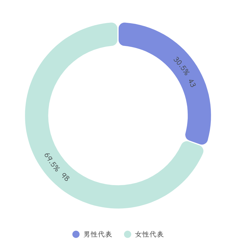女性代表共98名,占总代表的69.50%