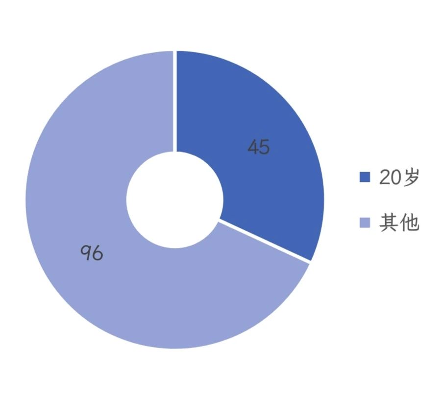 在141名参会人员中,20岁的学生占比最多,共45人,占总人数的31.91%