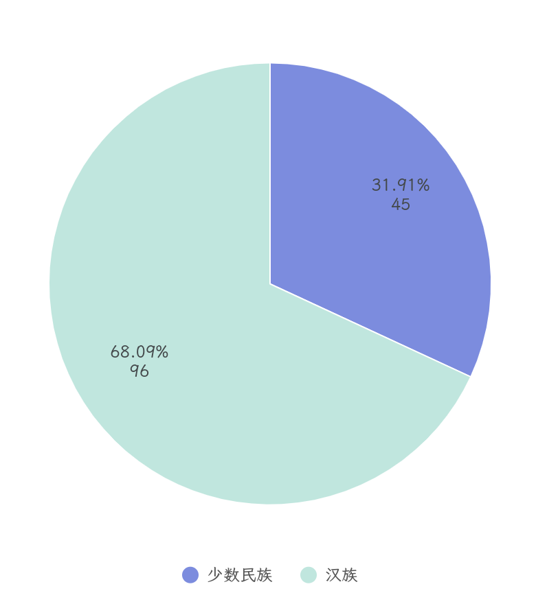 参会代表中有45名少数民族同学,占比31.91%