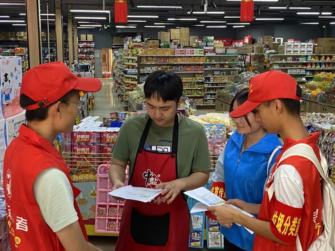 7月13日,实践团成员和河口镇人民政府工作人员针对一些容易产生可回收垃圾的场所,如超市、快递站、饭店等,有针对性的开展宣传活动,向相关站点工作人员宣讲了垃圾分类的方式、作用,倡导减少一次性物品的使用和消耗,不追求过度包装,增强包装回收利用,从根本上减少垃圾对环境的污染。