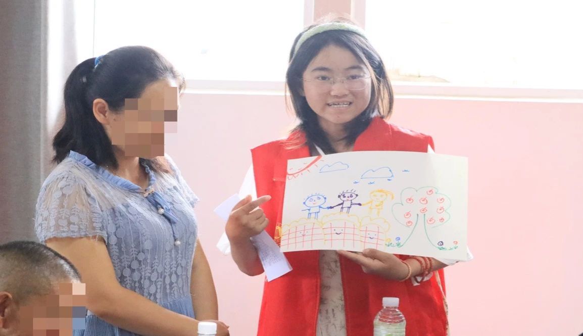 为更进一步了解精神障碍患者及其家属的内心世界与病情发展,小组活动邀请大营街与春和街道22户患者家庭,参考心理学“房、树、人”反应内心的知识,结合现实情况与社会需求,联合社会工作、老年学、法学三个专业开展了维权康复行、康知互享会、药慧同行、沟通之窗、心灵释放等活动。实践团队特别采用“创意绘画”的方式来帮助病患及家属认识自己,认识他人,打破隔阂。其中一位患者李阿姨(化名)画出了每一位家庭成员,配合蓝天白云的自然风景。画虽简单,但从其中能够看出她对家人的依靠,对生活的向往,以及内心丰富的情感世界。