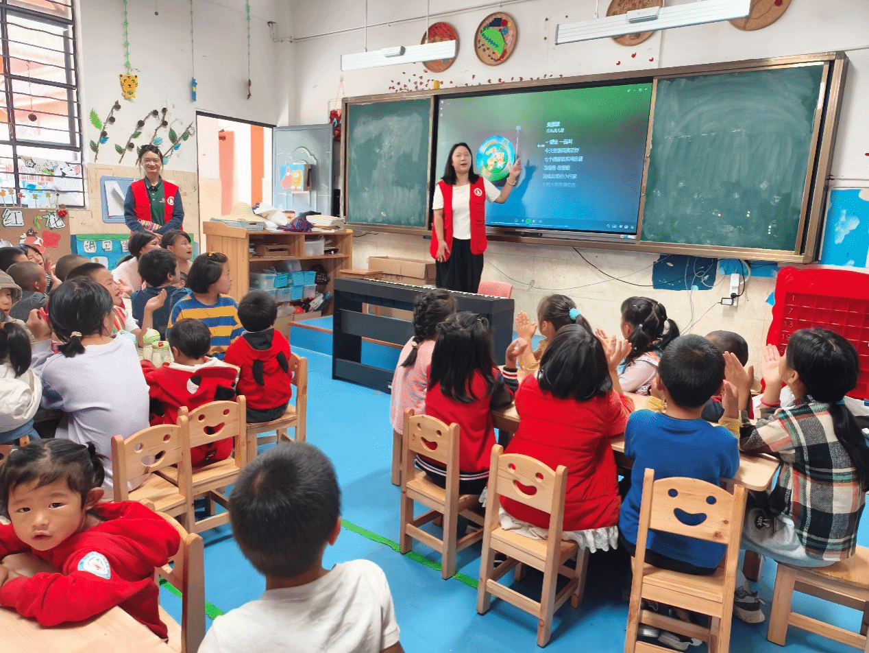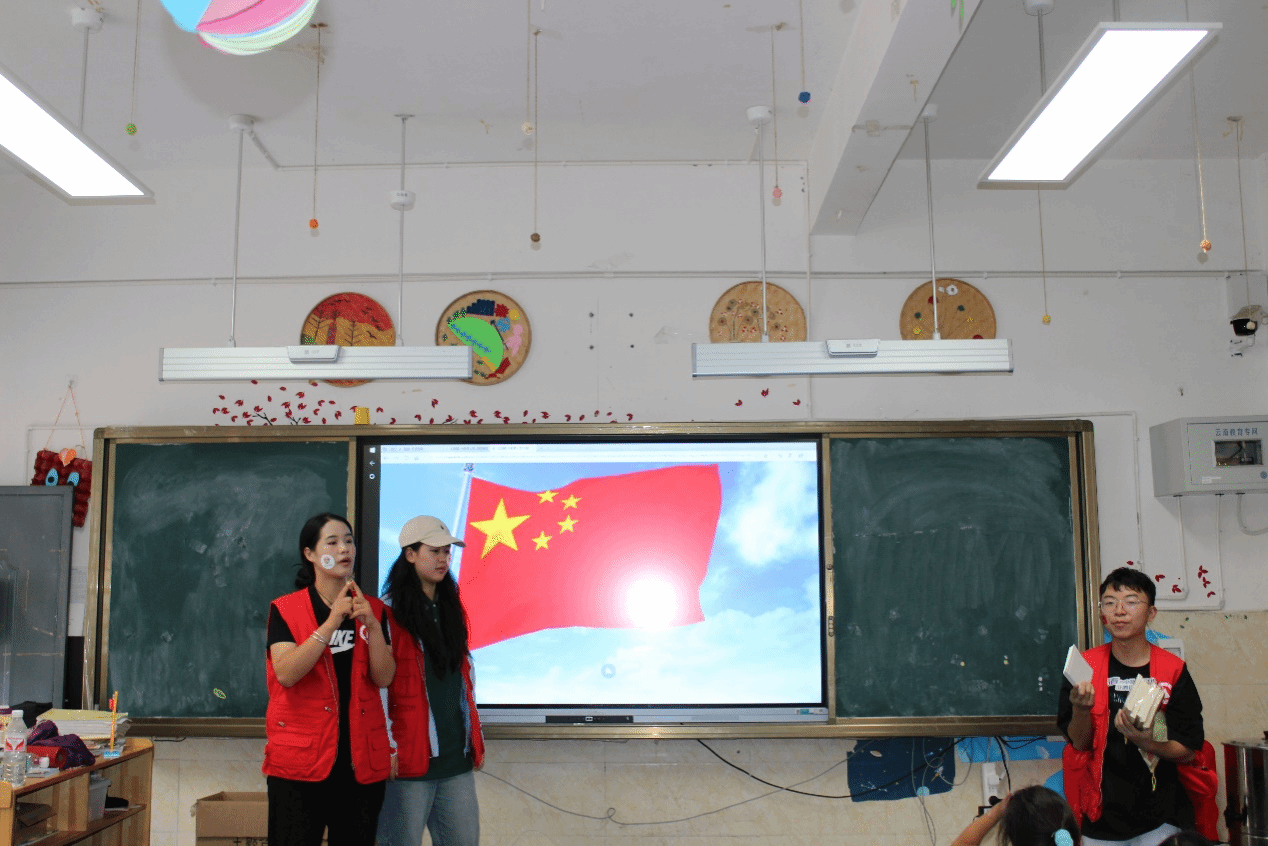 此外,鉴于玉溪师范学院所处地域的独特性,即作为国歌创作者聂耳的故里,实践团队特此策划了一系列爱国主义教育环节。团队成员采用标准普通话,向幼儿们详细叙述了聂耳与国歌之间的故事,对国旗的内涵进行了全面解读,以此加强孩子们的爱国情怀与民族自豪感。