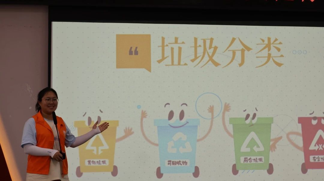 在垃圾分类小课堂,实践团成员给小朋友们带来了生动形象的垃圾分类教学。通过印有各种图案的小卡片和迷你垃圾桶的展示,在保证课堂效率的同时增加了趣味性。