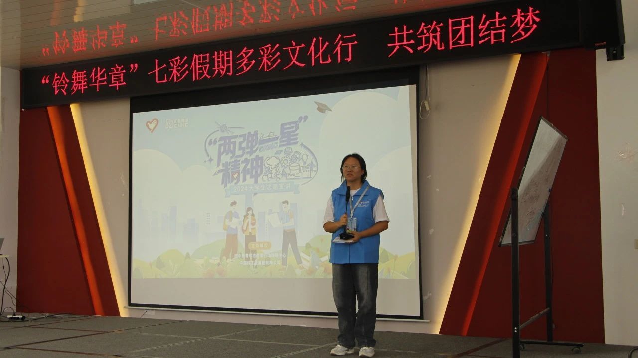 在“两弹一星”精神宣讲活动中,实践团成员为小朋友讲解“两弹一星”含义和相关知识,带领小朋友学习两弹元勋的事迹和精神,让一颗颗“强军梦”“航空梦”“科学家梦”的种子埋在小朋友心中生根发芽。