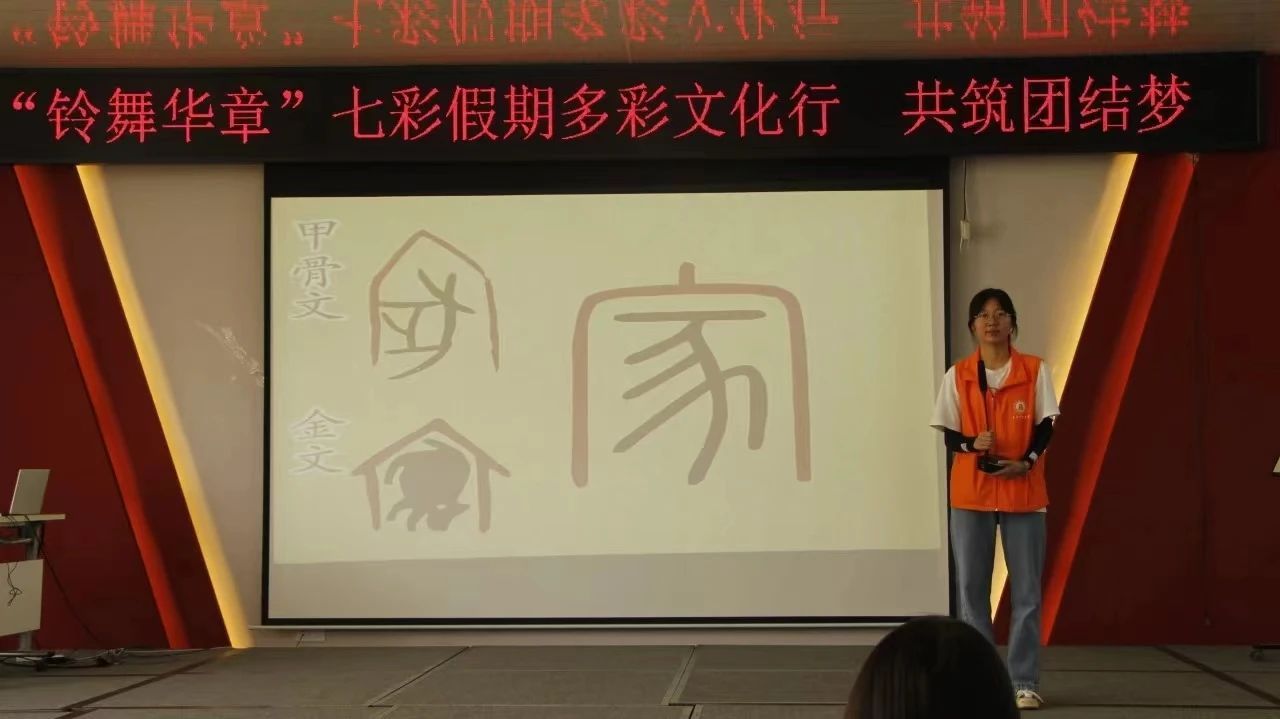 在“甲骨文与汉字演变”课堂上,实践团成员带领小朋友们了解甲骨文的形态特点,深入讲解汉字发展的过程及意义,具体以“家”与“国”两个字为例,进一步加深小朋友对汉字历史和发展的认识。在“百家姓,千万家”手工制作冰箱贴的过程中,培养小朋友们的中华民族共同体意识,理解在中华民族大家庭中,大家手足相亲、守望相助,才能实现民族复兴的伟大梦想,民族团结进步之花才能长盛不衰。