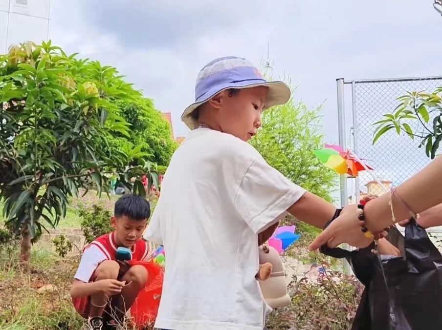 随后实践团成员们带领小朋友走出课堂,走进大自然,感受了田园风光,并沿途捡起路边的垃圾进行分类,为美丽的曼哈社区做出一份贡献。