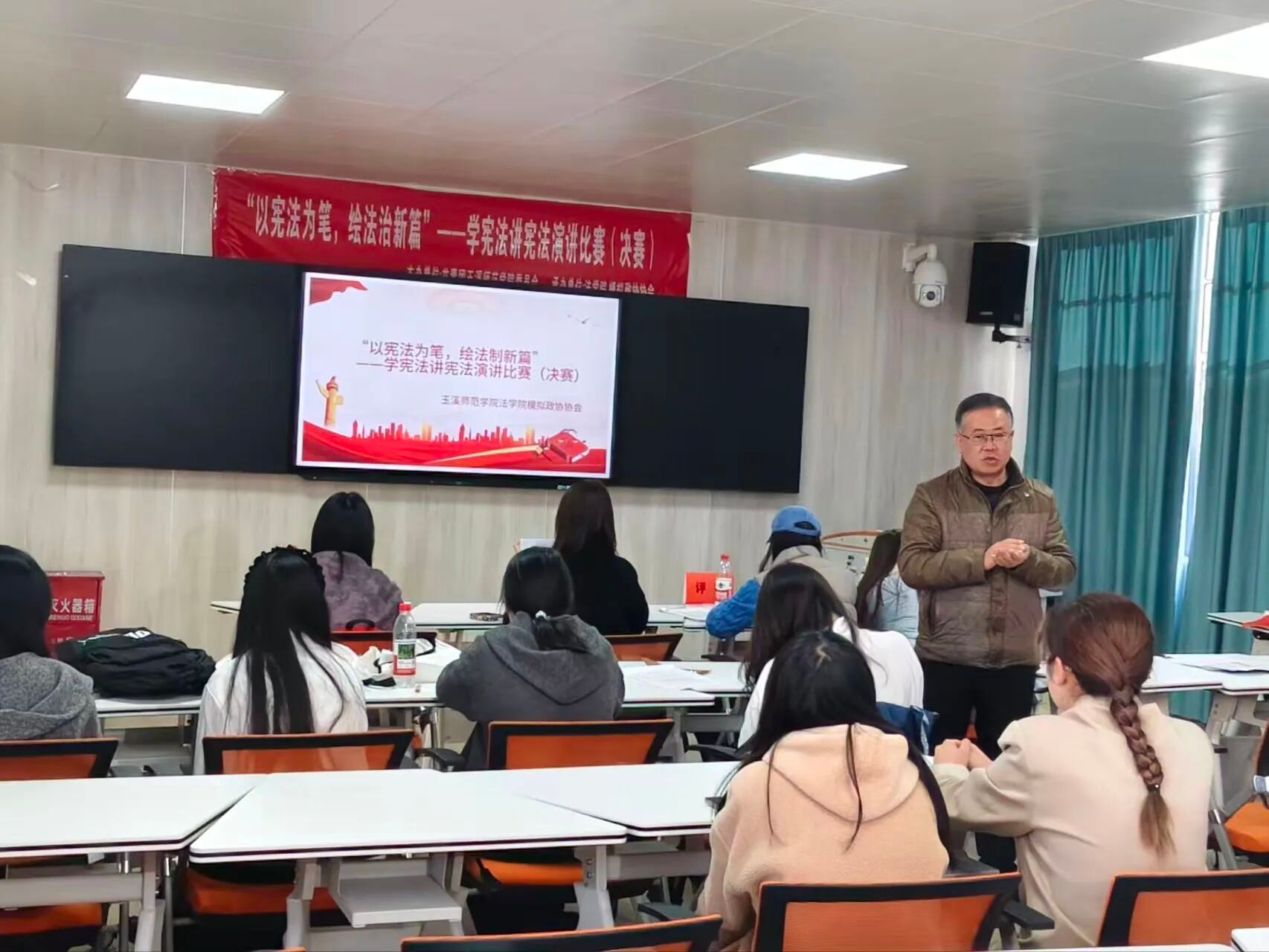 为引导青年学生树立法治意识,近期,“以宪法为笔,绘法治新篇”演讲比赛在四教310教室顺利举行。本次活动由共青团玉溪师范学院委员会、法学院联合学生模拟政协协会共同主办。